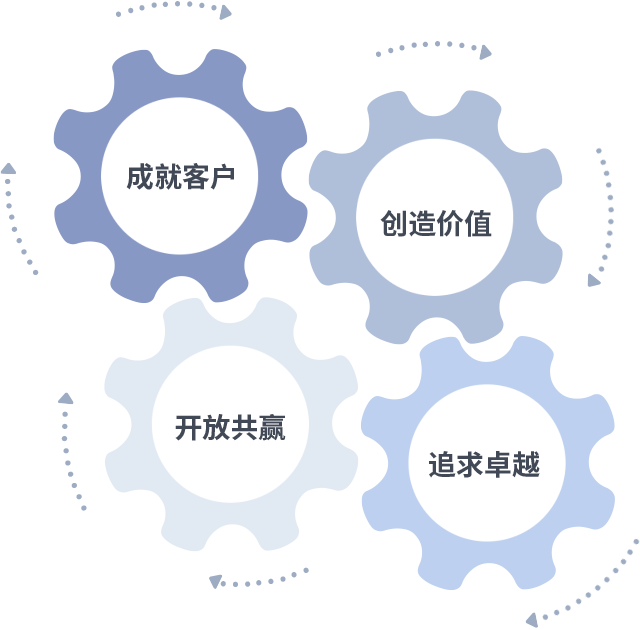 成就客户是一切决策的出发点,创造价值是衡量所有工作的标准,追求卓越是米兰-milan做事做人的态度,开放共赢是米兰-milan的格局也是最终的结果。价值观的齿轮环环相扣,推动着组织里的每个人不断向前。